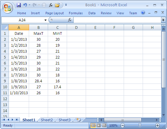 Step 1 : Arrange daily weather data is an Excel sheet in the given format order of parameter.